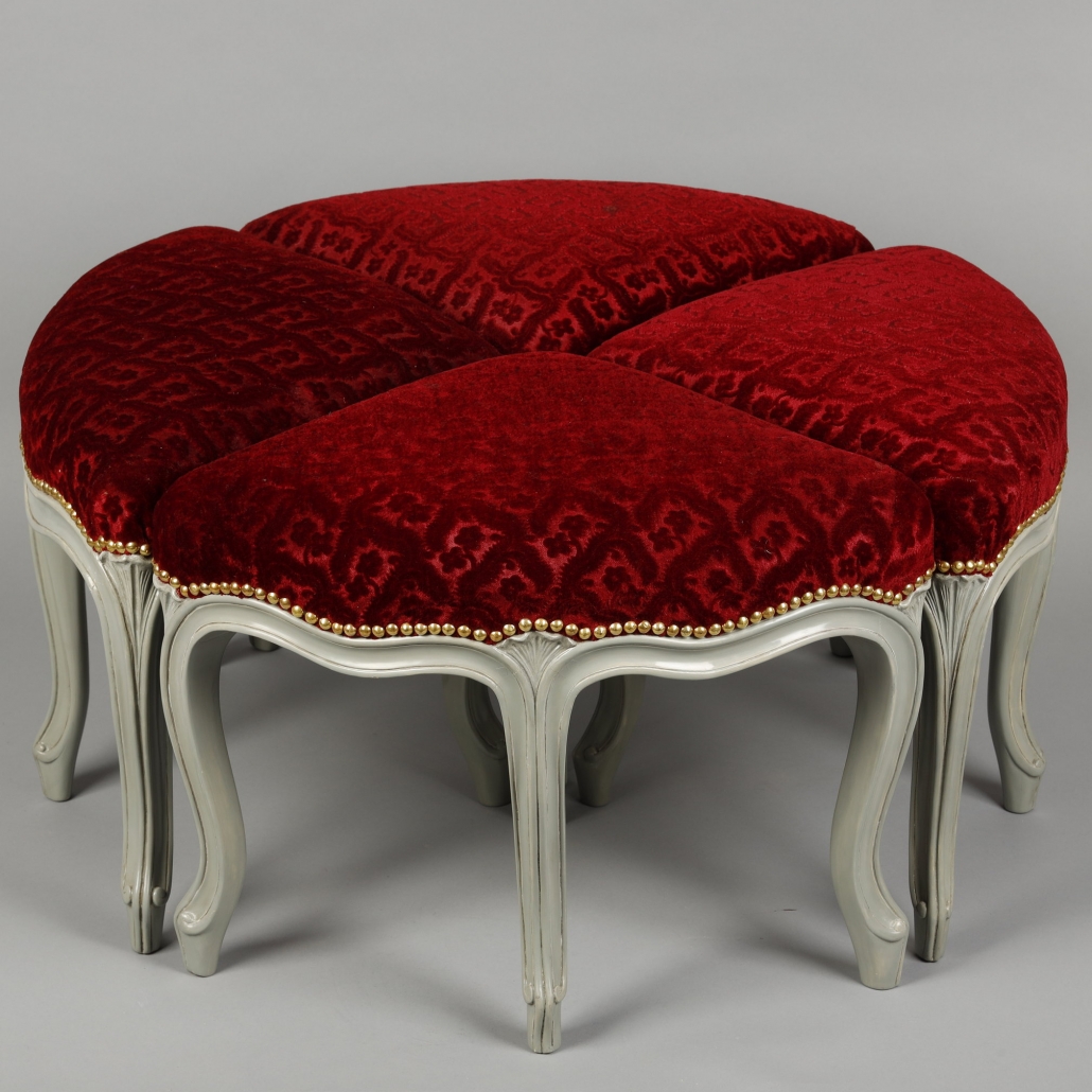 Exceptionnelle suite de quatre tabourets Louis XV estampillés Poirié