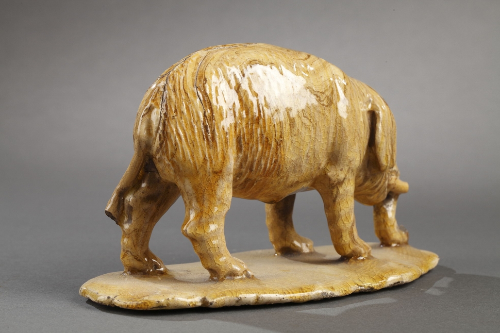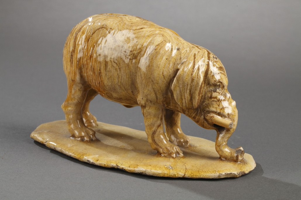 MIDI de la FRANCE : (APT-AVIGNON) : Figurine en faïence fine en technique de terres mêlées représentant un éléphant.