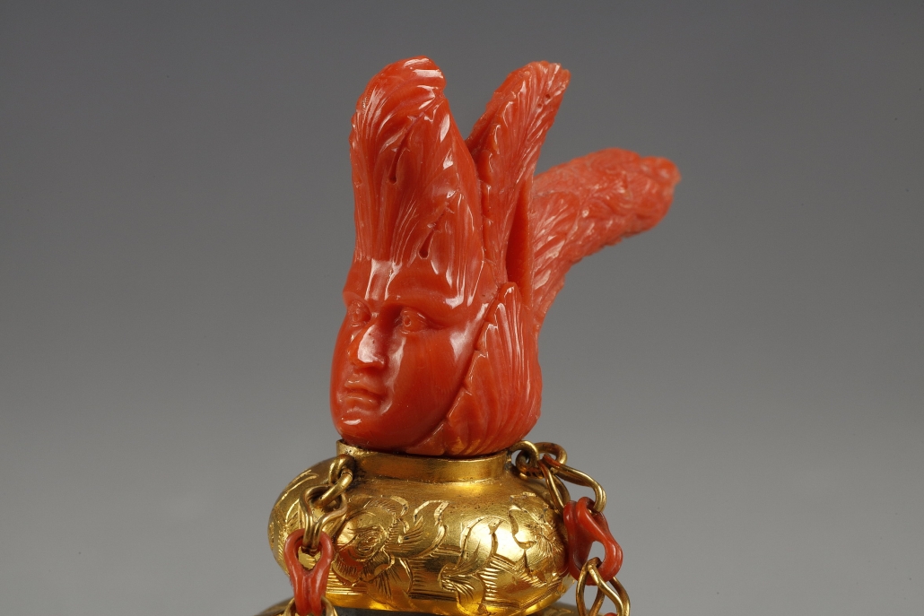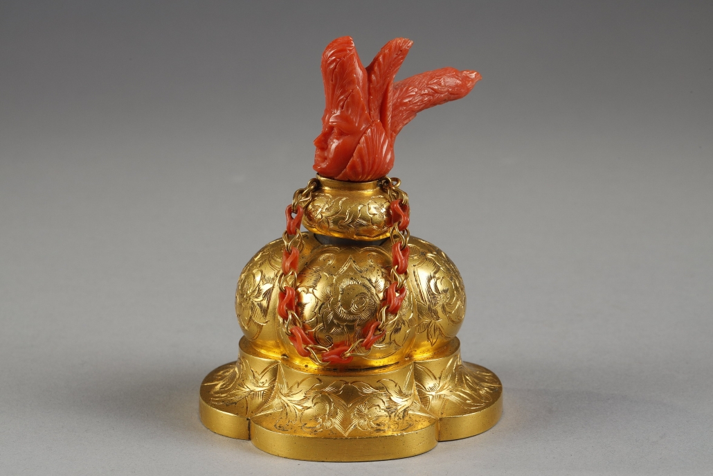 Encrier bronze doré et corail sculpté attribué à L’Escalier de Cristal