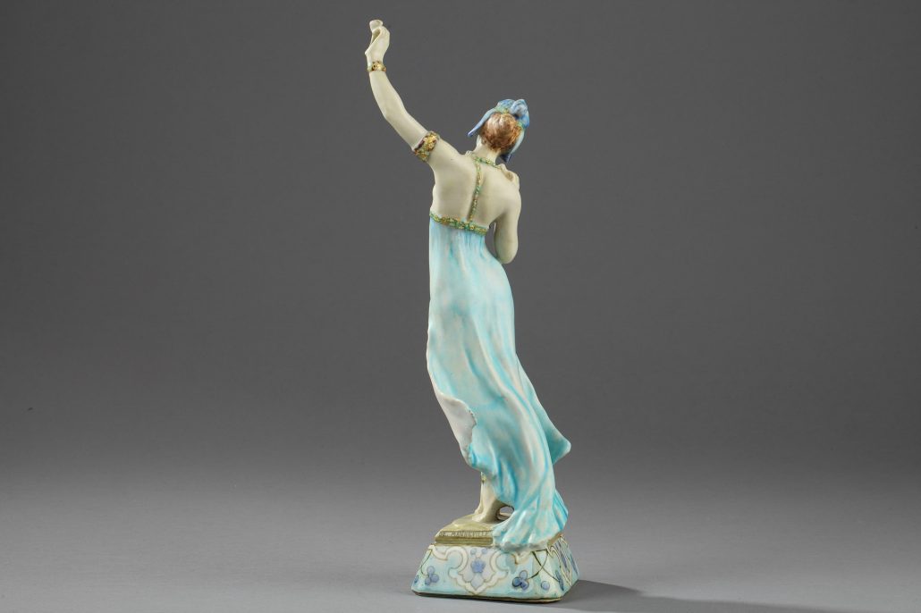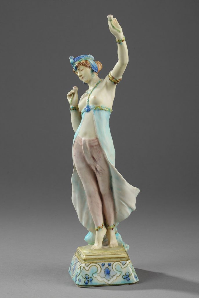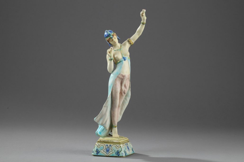 EDMOND LACHENAL : Rare figurine représentant une danseuse orientaliste sculptée par Manneville. Il s’agit probablement de la représentation de Sarah Bernhardt dans un de ses rôles.