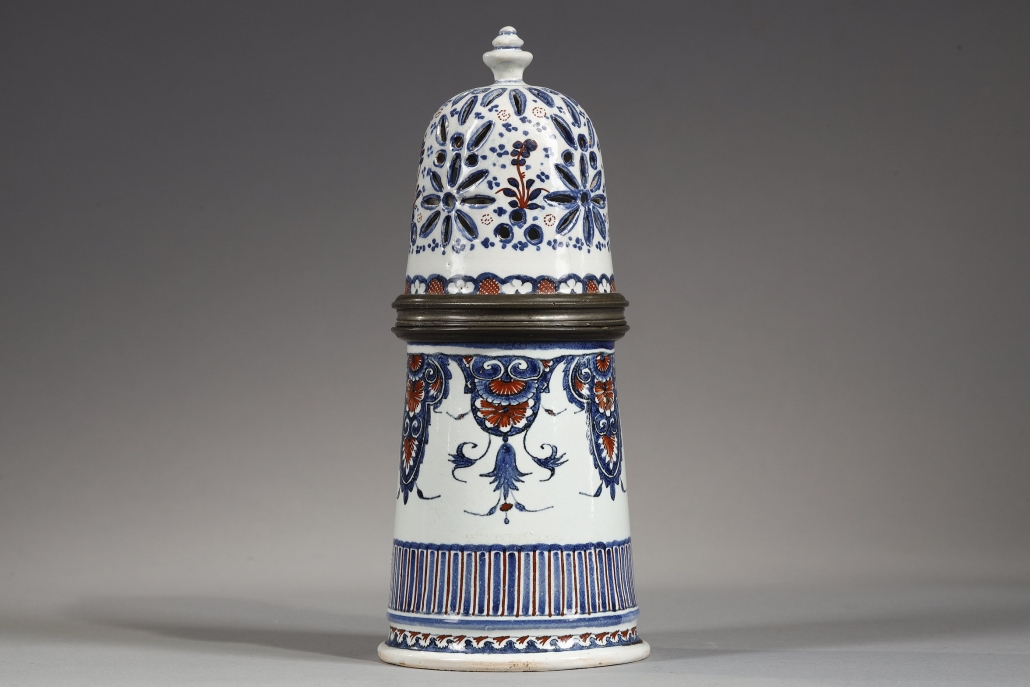 Grande saupoudreuse en faience de Rouen premier tiers du 18e siècle
