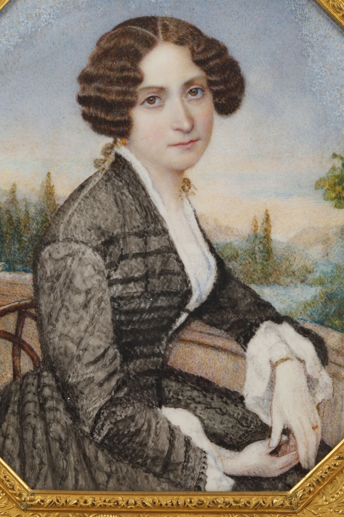 FRANCE : Paire de miniatures, gouaches sur papier, représentant la cantatrice Maria Garcia Malibran dite « la Malibran » (24 mars 1808 – 23 septembre 1836) et son second mari Charles August de Bériot compositeur et violoniste belge.