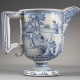 Coupe en faïence de forme circulaire à fond bleu persan à rare décor en blanc fixe des armoiries de l’évêque Gilbert de Vény d’Arbouse (1606-1682), évêque de Clermont en 1664.