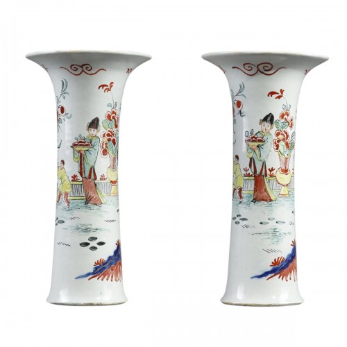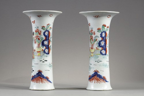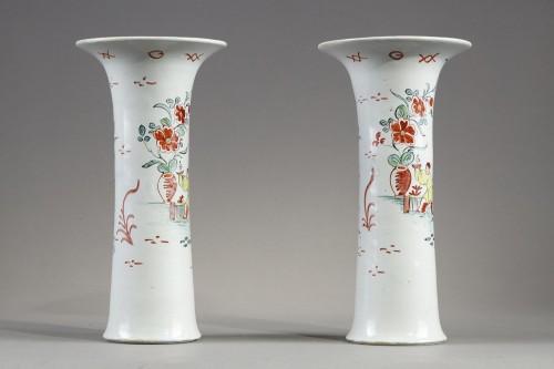 Paire de vases cornet Delft décor petit feu XVIIIe siècle