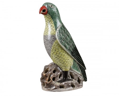 Perroquet en biscuit émaillé Chine période Kangxi 1662 – 1722