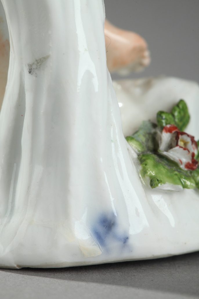 MEISSEN : Mid 18th century. Figure of a child holding grapes.