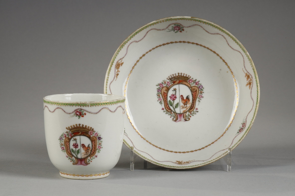Tasse et sa sous-tasse armoriées, Chine XVIIIe siècle