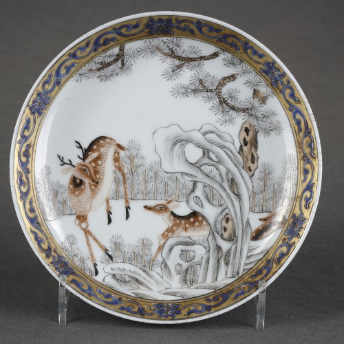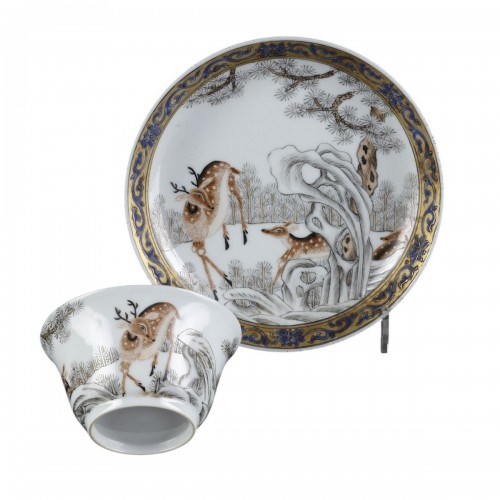 Tasse et sa sous-tasse aux daims, Periode Yongzheng (1723-1735)