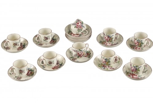 Ensemble de tasses et sous-tasses en pâte tendre, MENNECY 18ème siècle