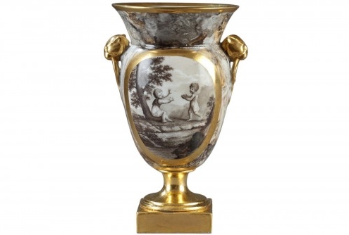 Dagoty vase à l'imitation du marbre et scène en grisaille, Epoque Empire