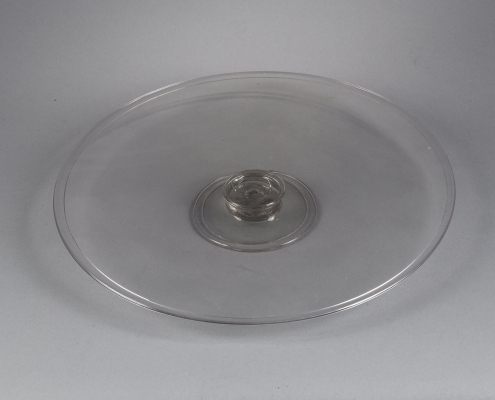 Rare grand guéridon en verre sur pied circulaire, France, façon Venise 17e siècle.